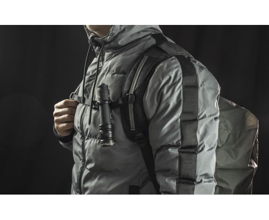 Dobermann Pro Max is compatible with the specially designed magnetic remote switch and original mounts for use as a mounted light. The model works not only on the included power supply, but also on any standard 21700 Li-Ion battery, as well as, thanks to the adapter, on an 18650 Li-Ion battery or two CR123A lithium batteries. The variability of the power supplies makes it possible to significantly increase the operating time.