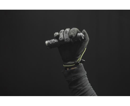 - Non-flat tactical button allows to easily switch the flashlight with a palm.