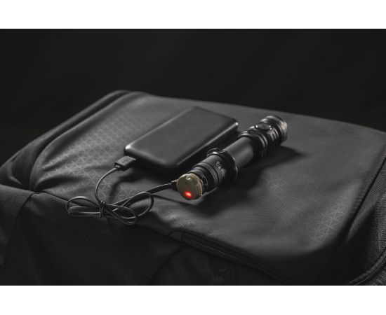 - Possibility to work together with an external power source when 21700 Li-Ion or 18650 Li-Ion battery with adapter is installed in the flashlight (not with 2xCR123A).