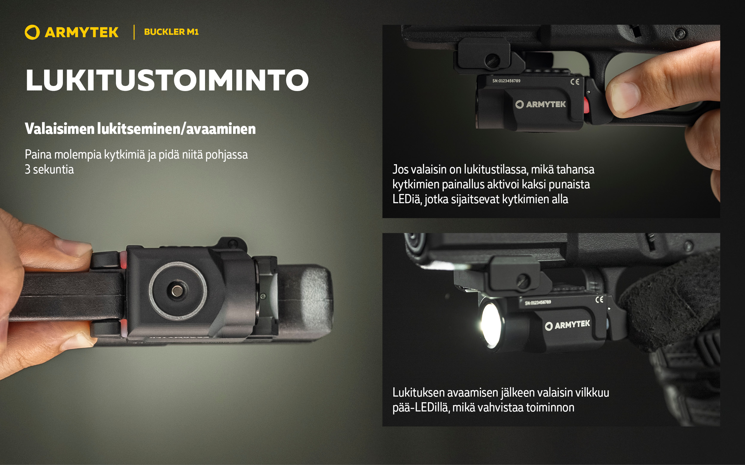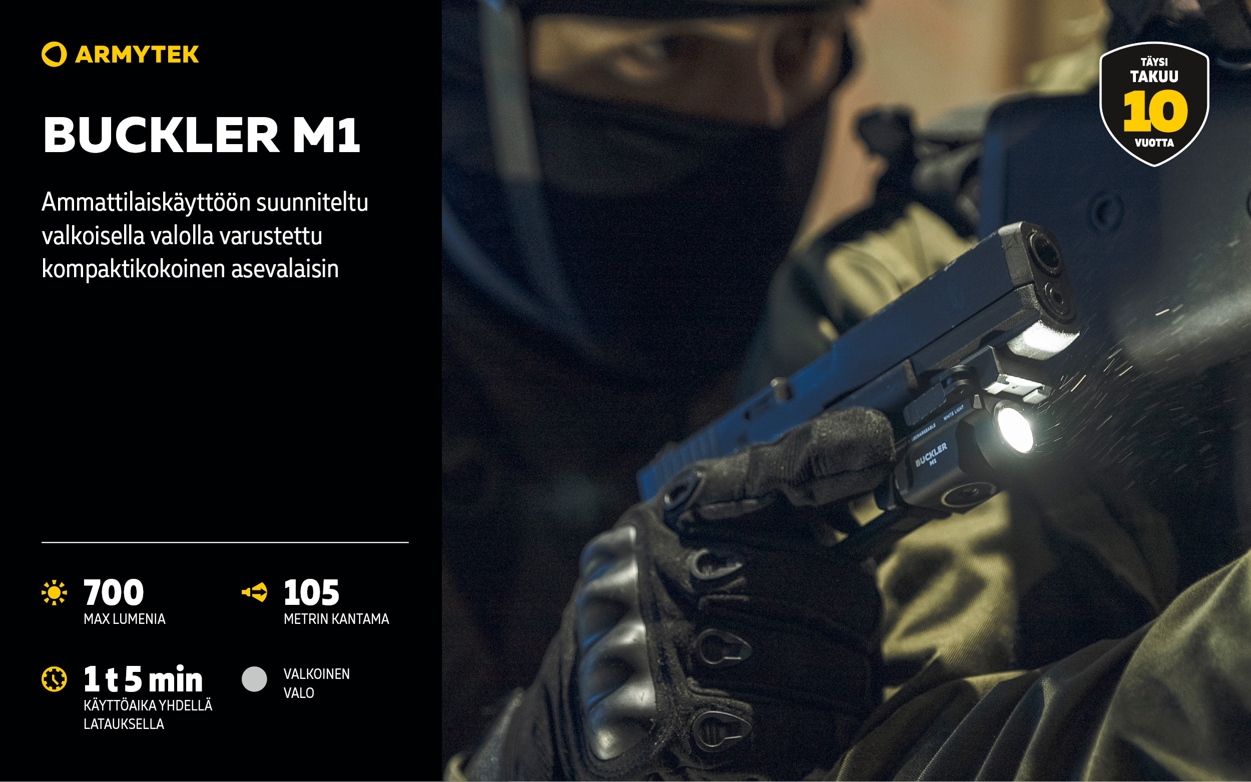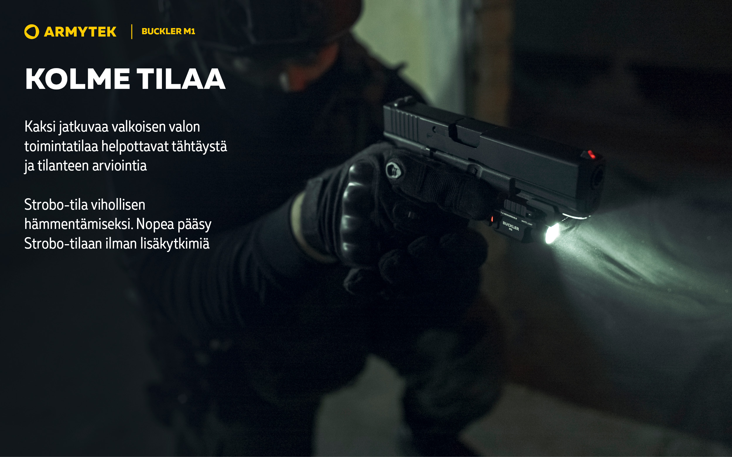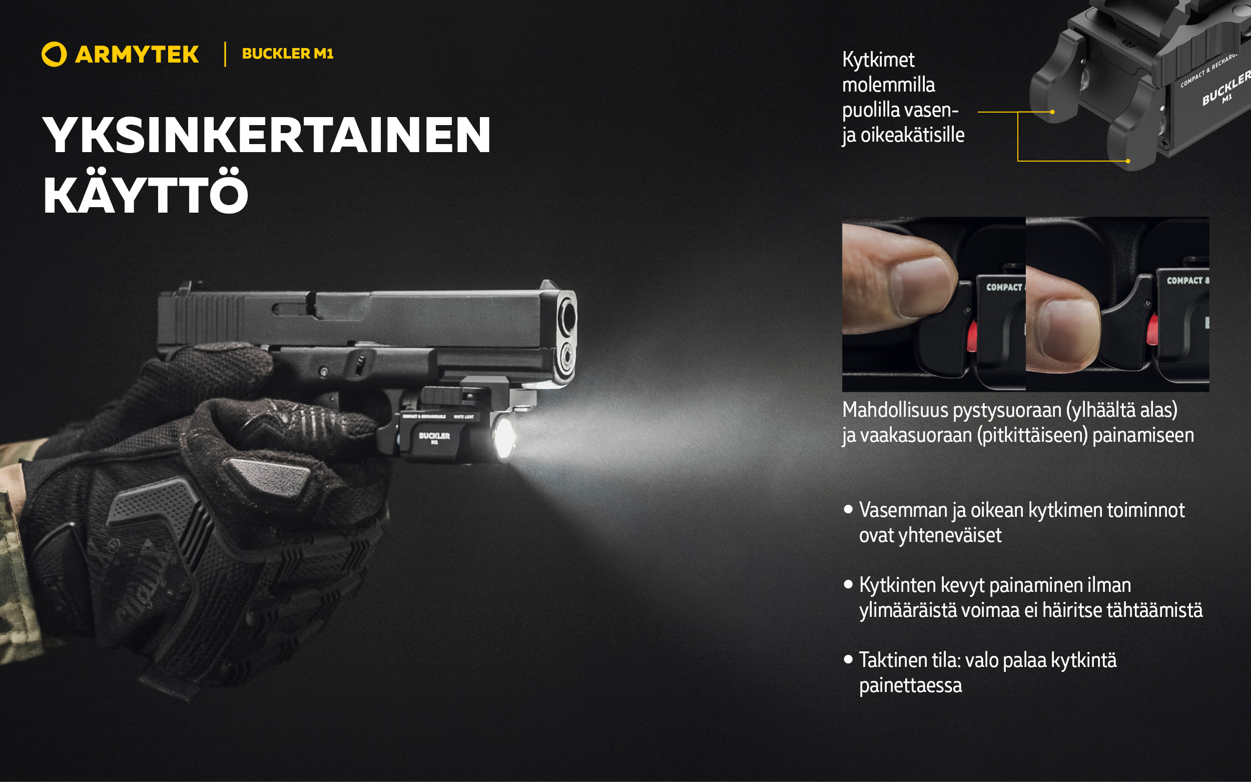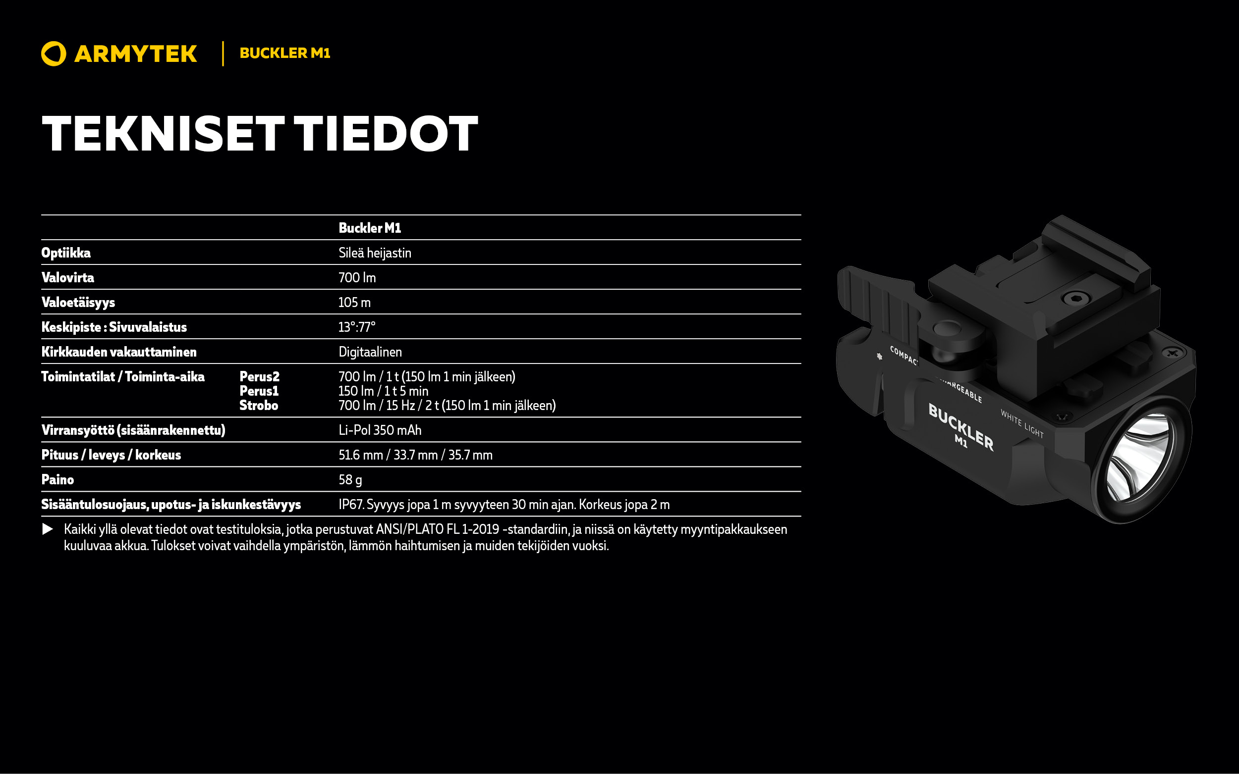 Buckler M1 on taktinen valaisin, jossa on integroitu kiinnike käsiaseeseen asennusta varten. Malli sopii sekä erikoisjoukkojen käyttöön että siviilikäyttöön.