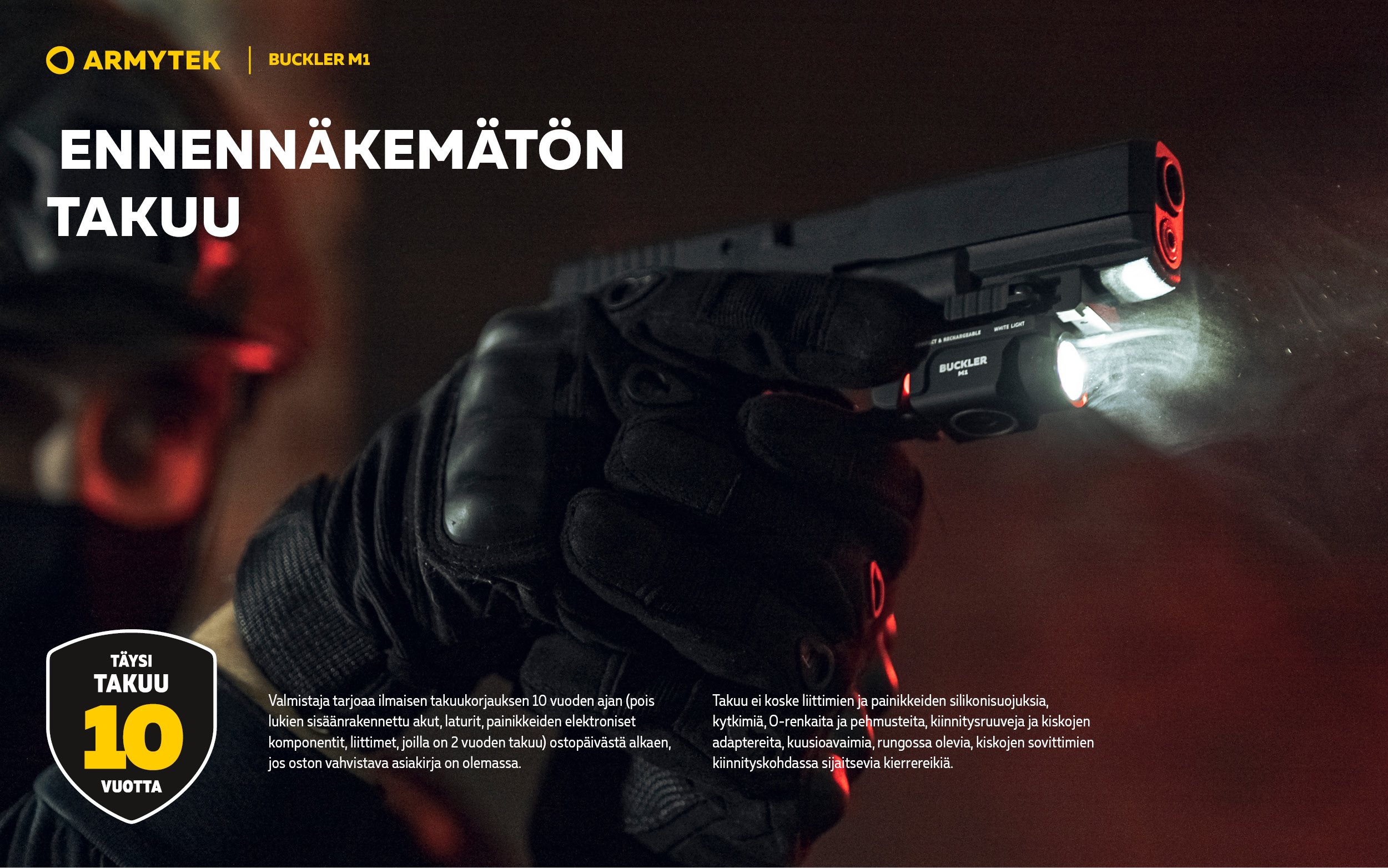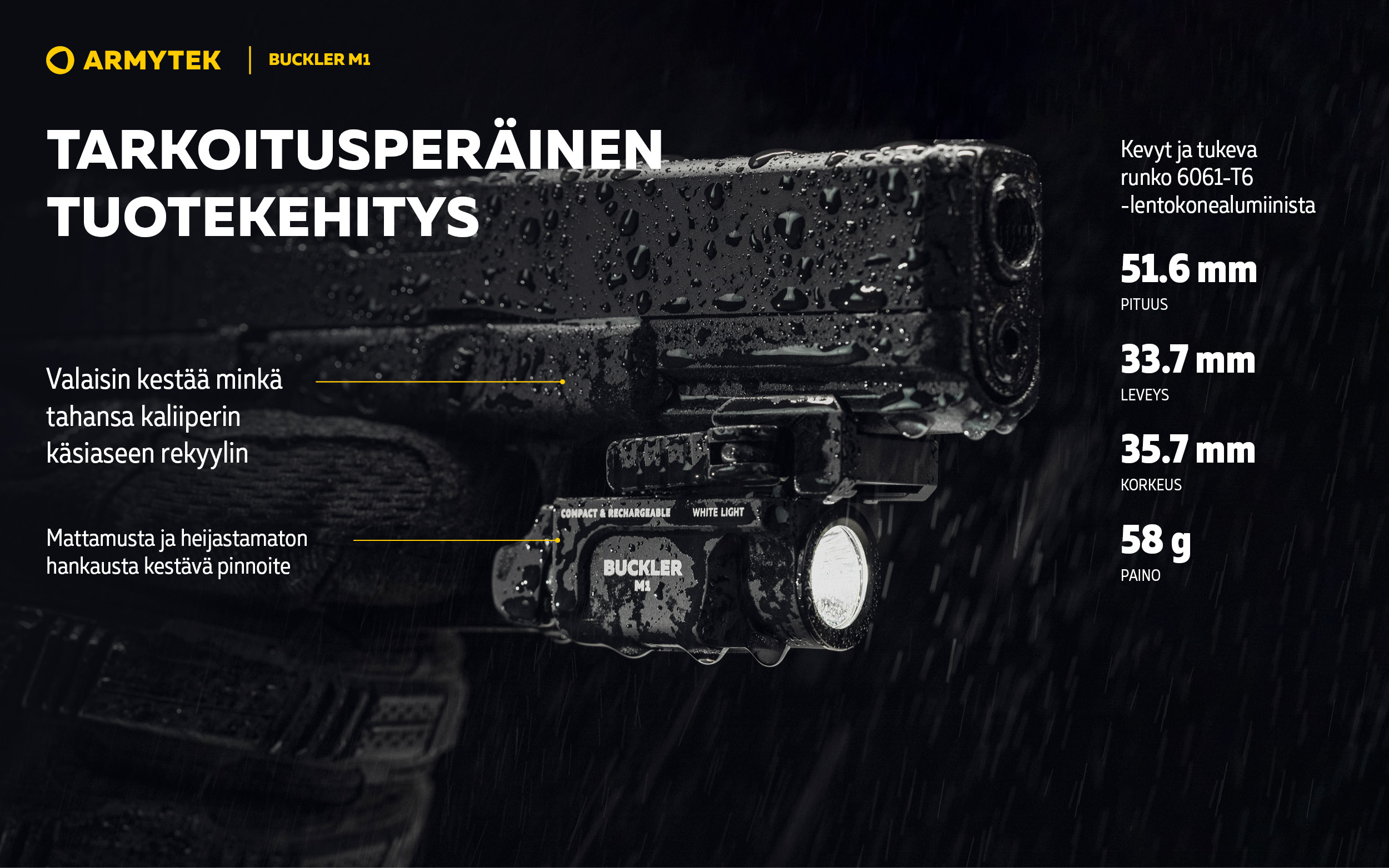 - Valaisin kestää minkä tahansa kaliiperin käsiaseen rekyylin.