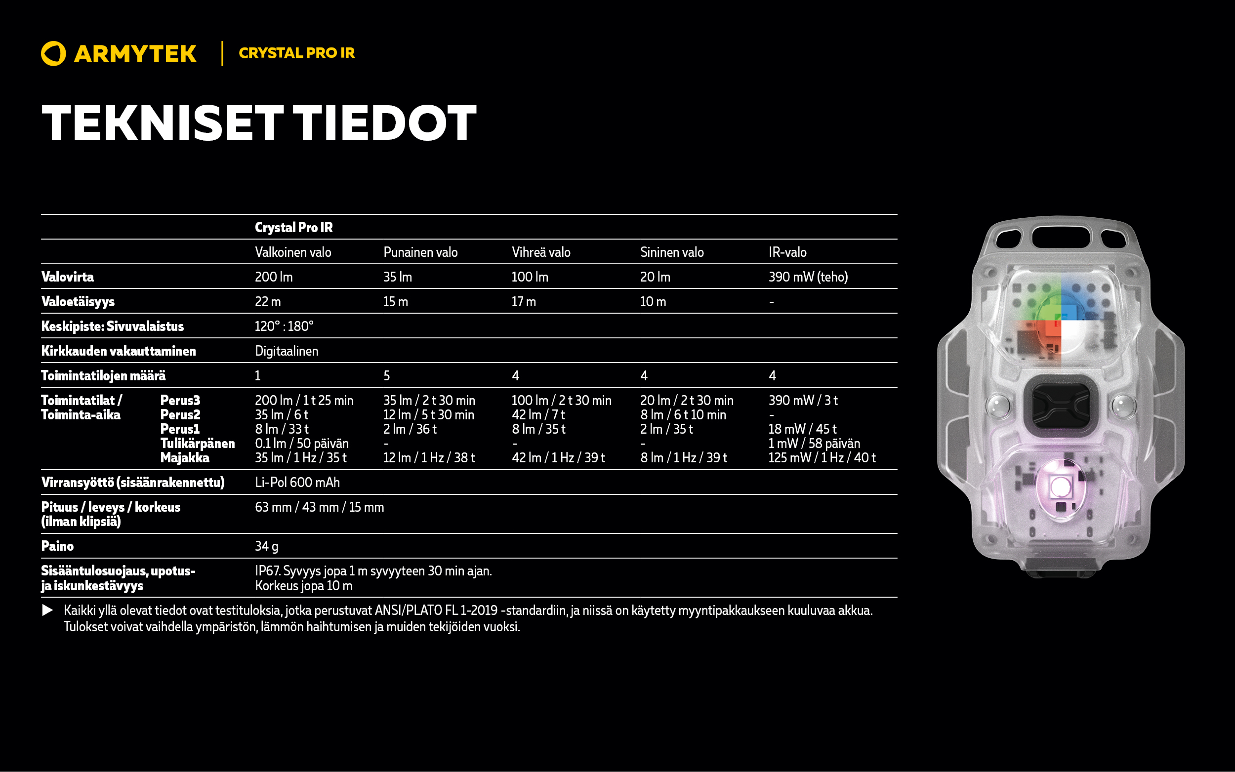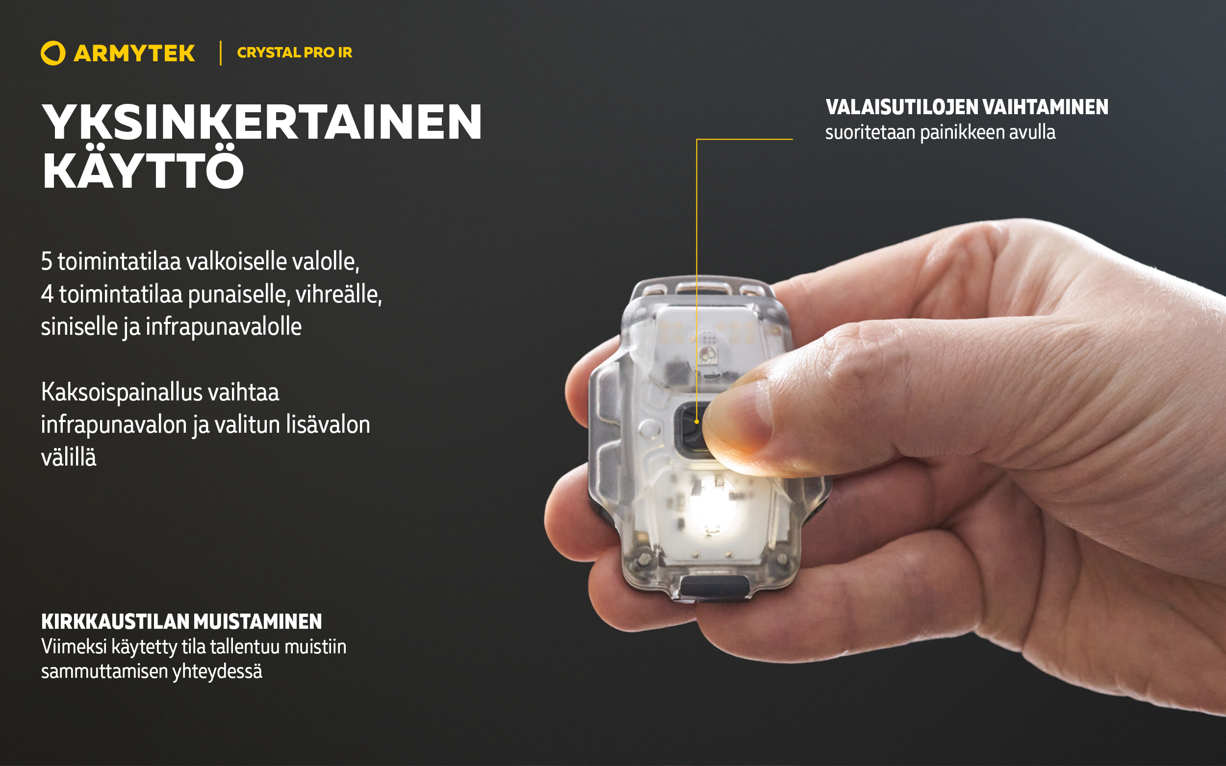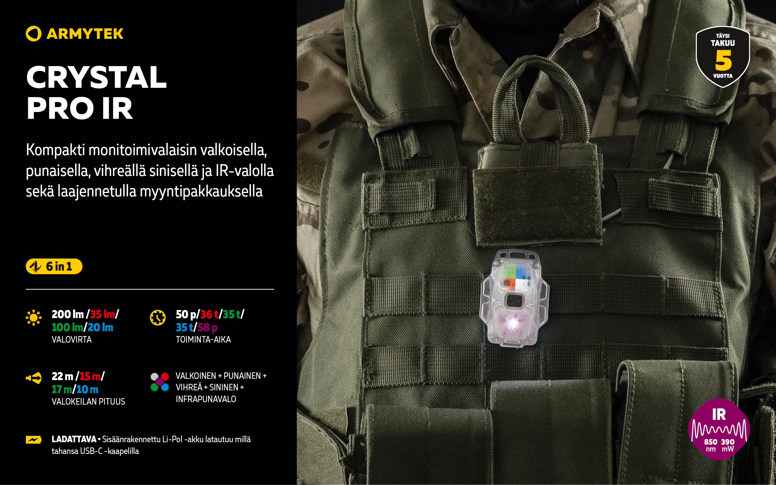 Crystal Pro IR — Kompakti monitoimivalaisin 6 IN 1