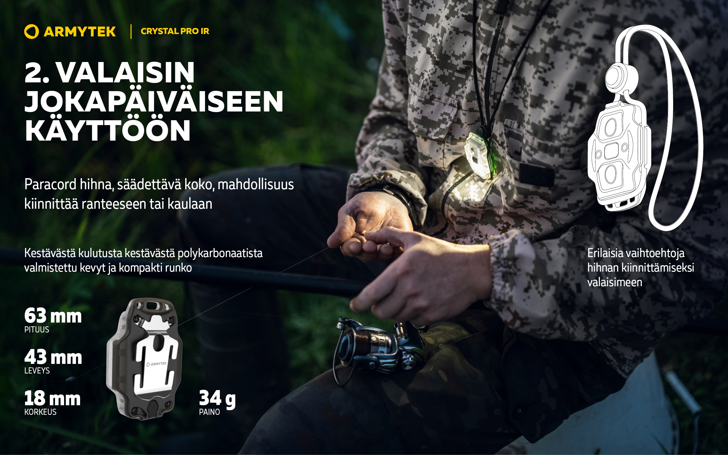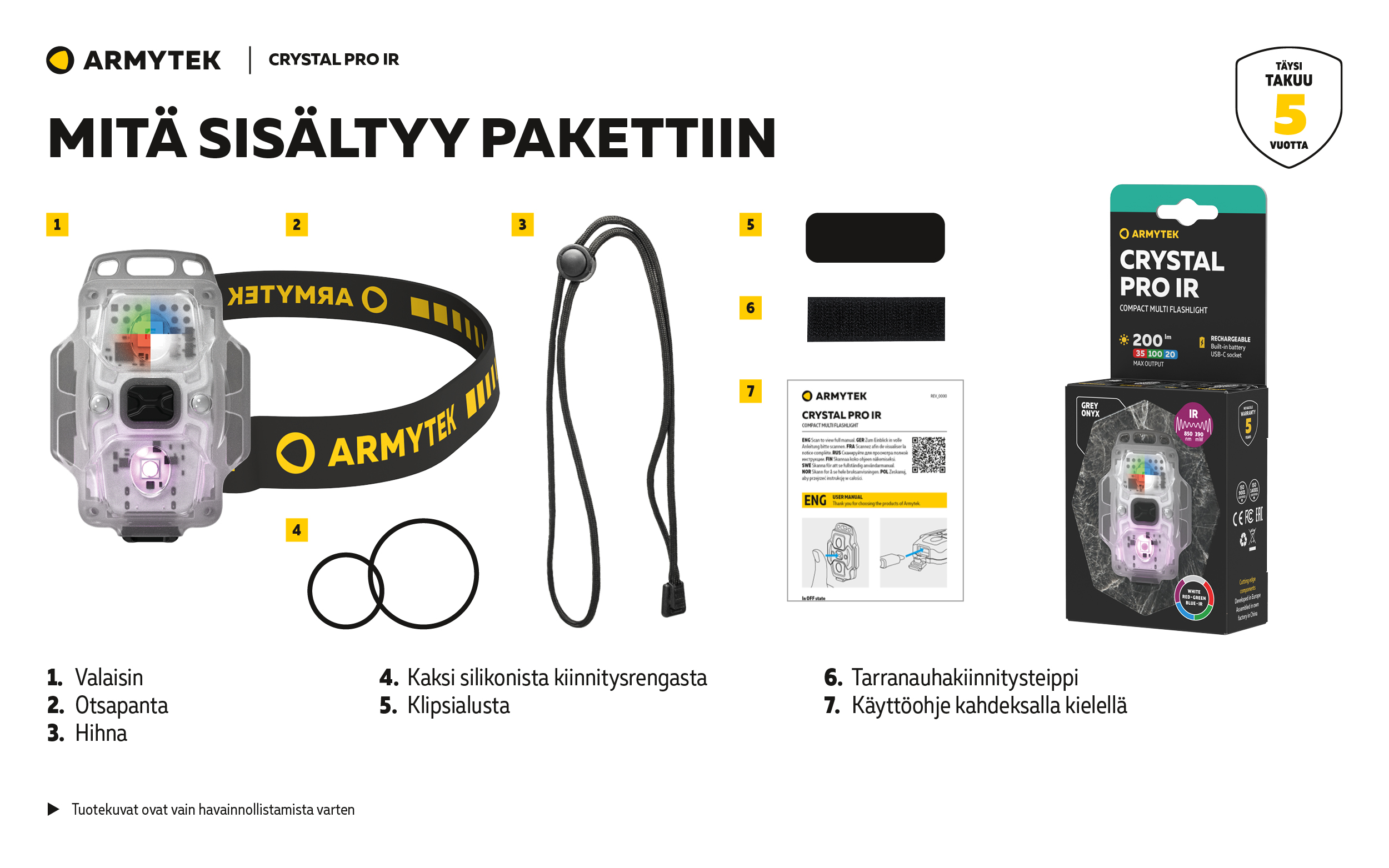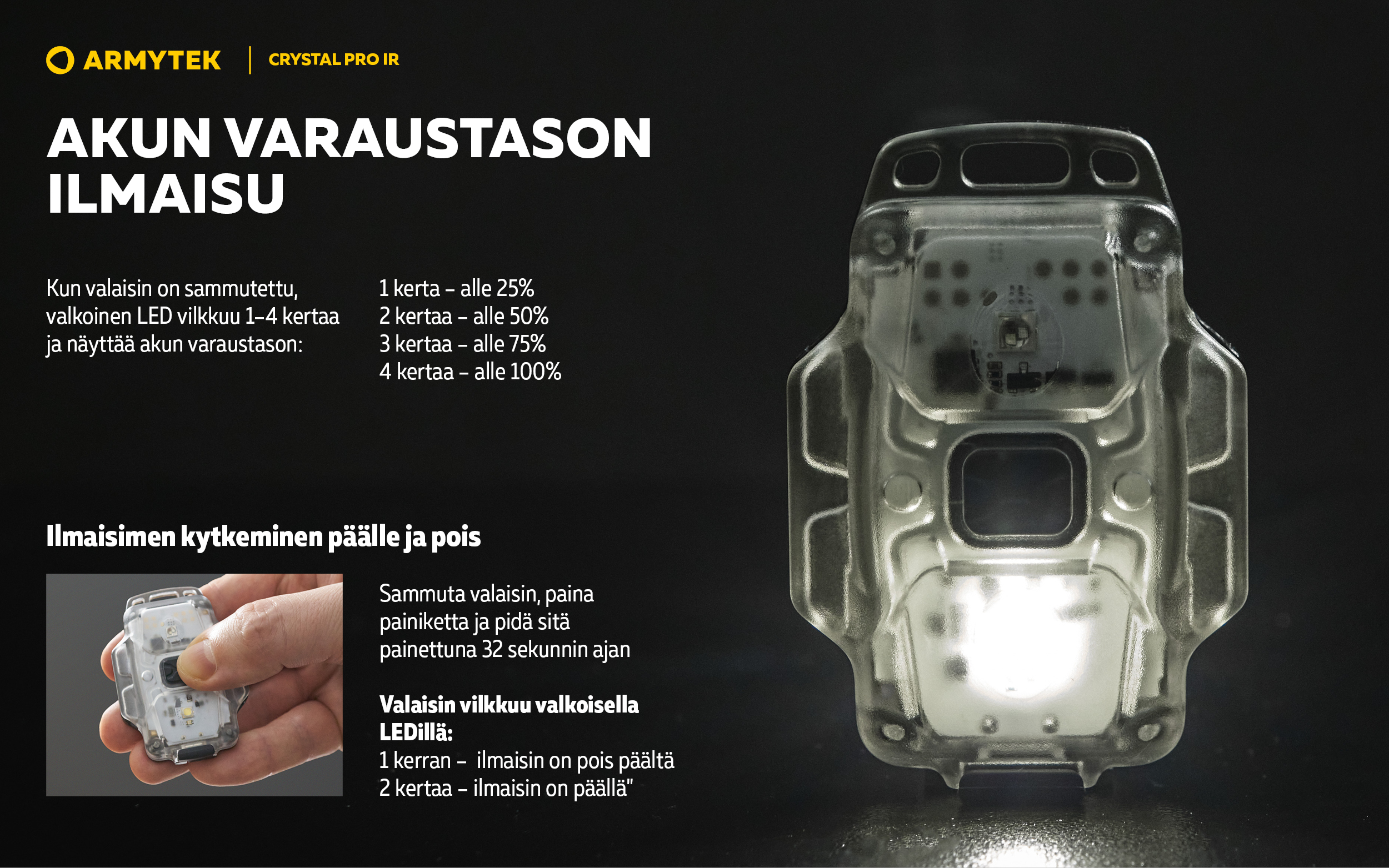 Crystal Pro IR — Kompakti monitoimivalaisin 6 IN 1