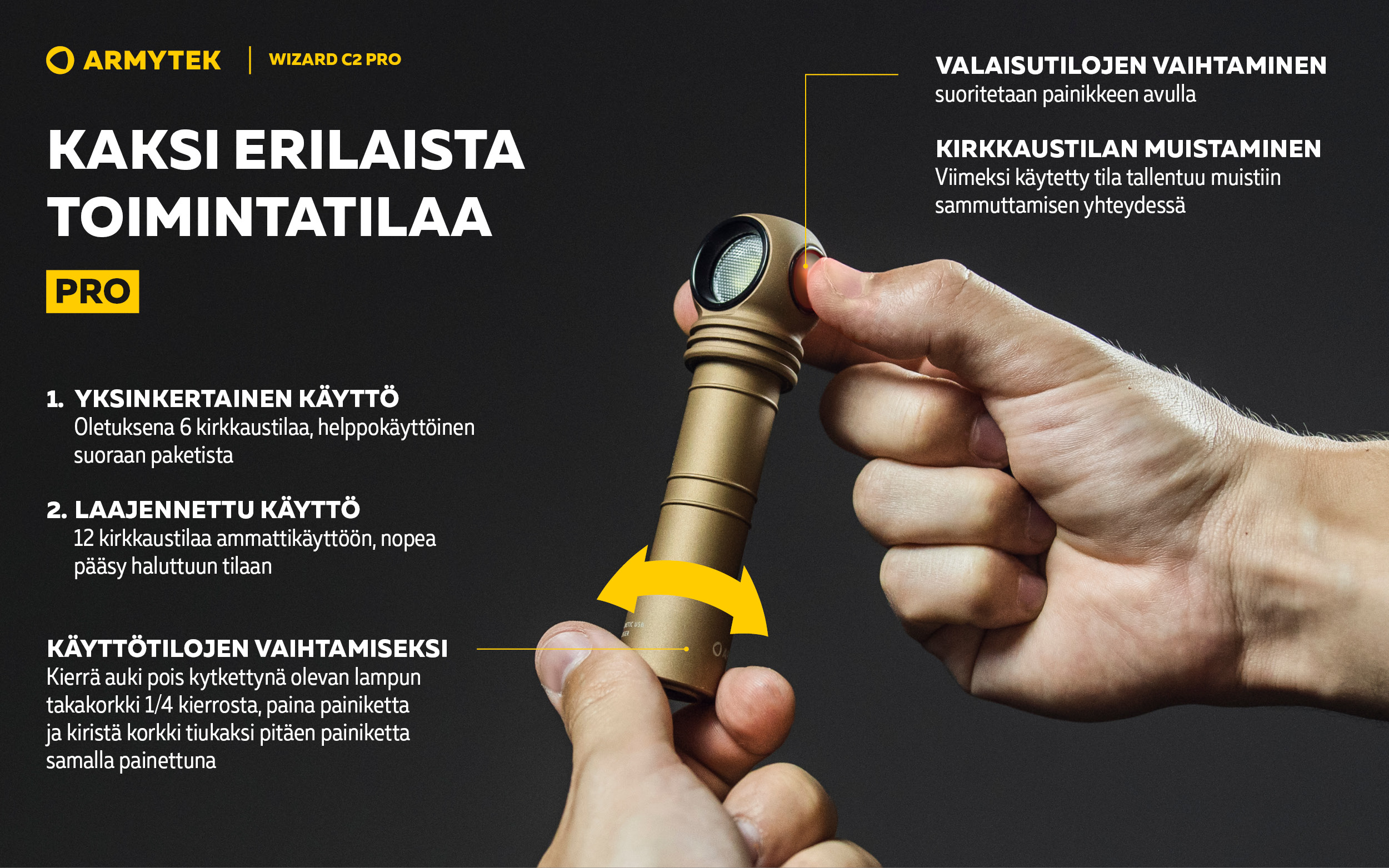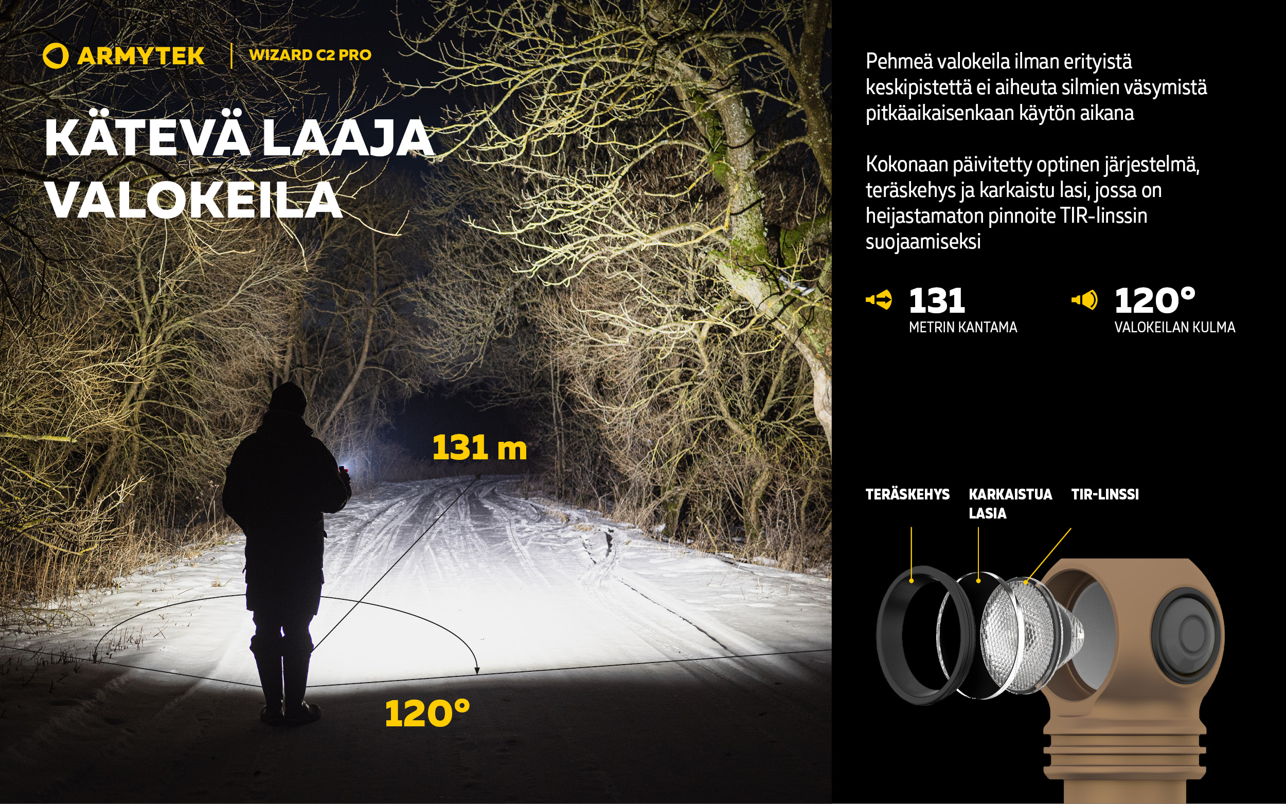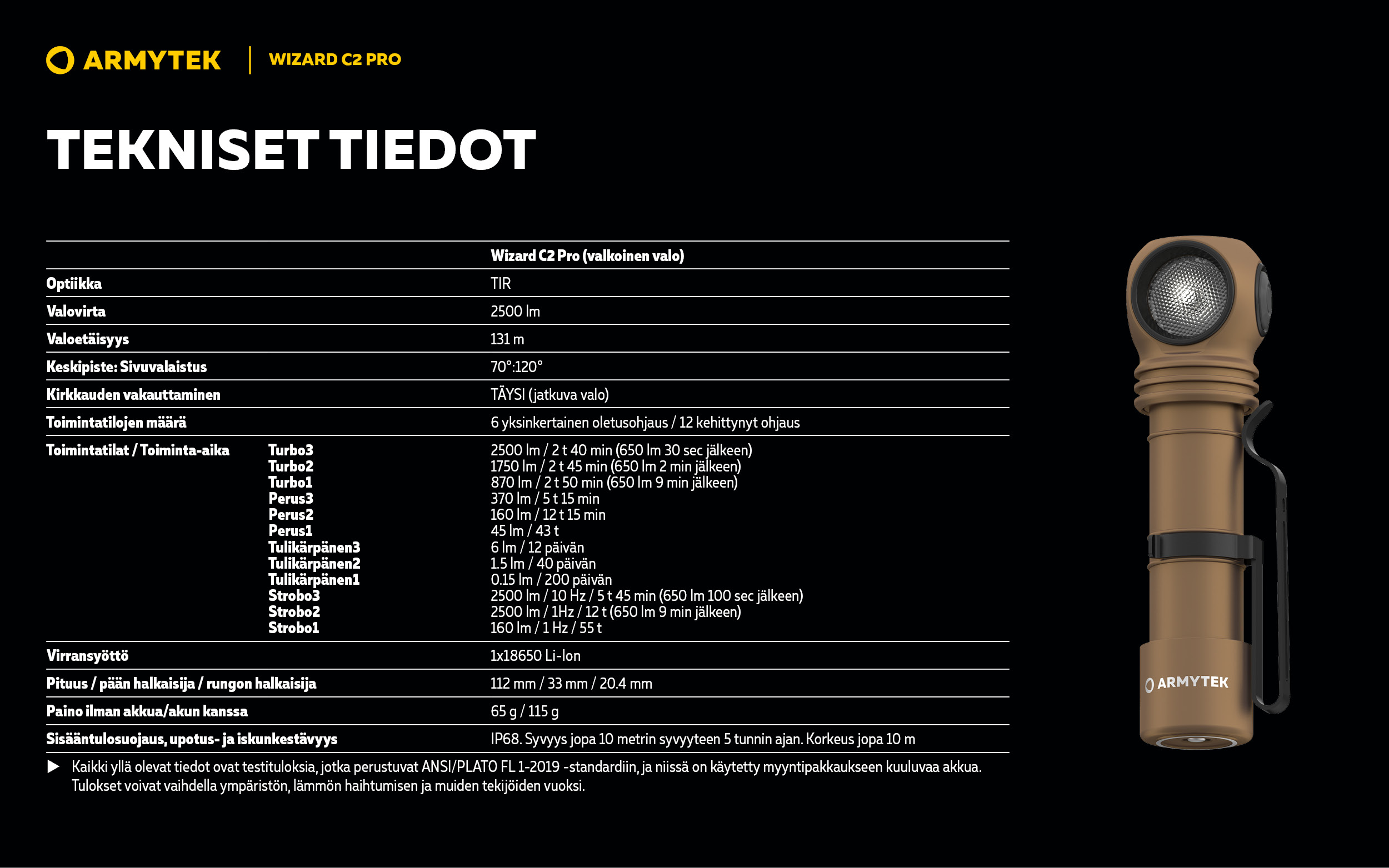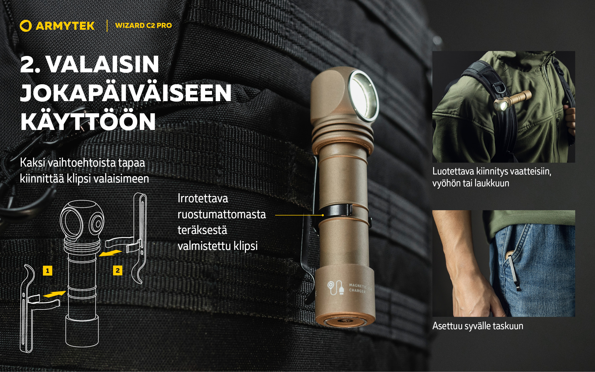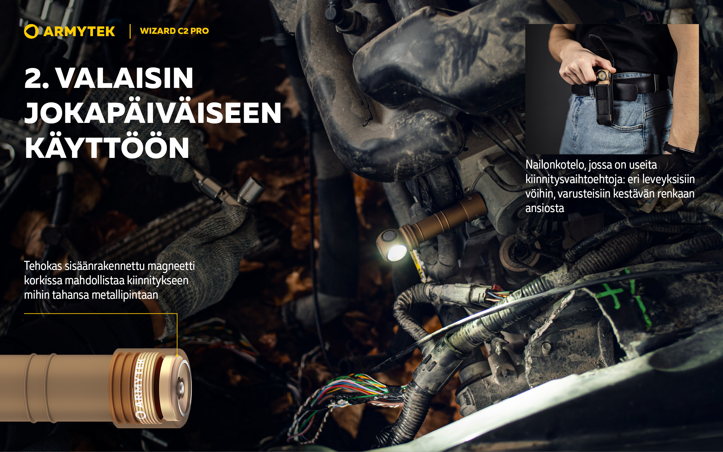 Wizard C2 Pro – ensimmäinen monitoimivalaisin Armytekin uudessa mallistossa.